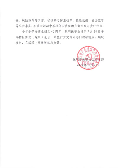深圳保安協會發布關于七一建黨節倡議書